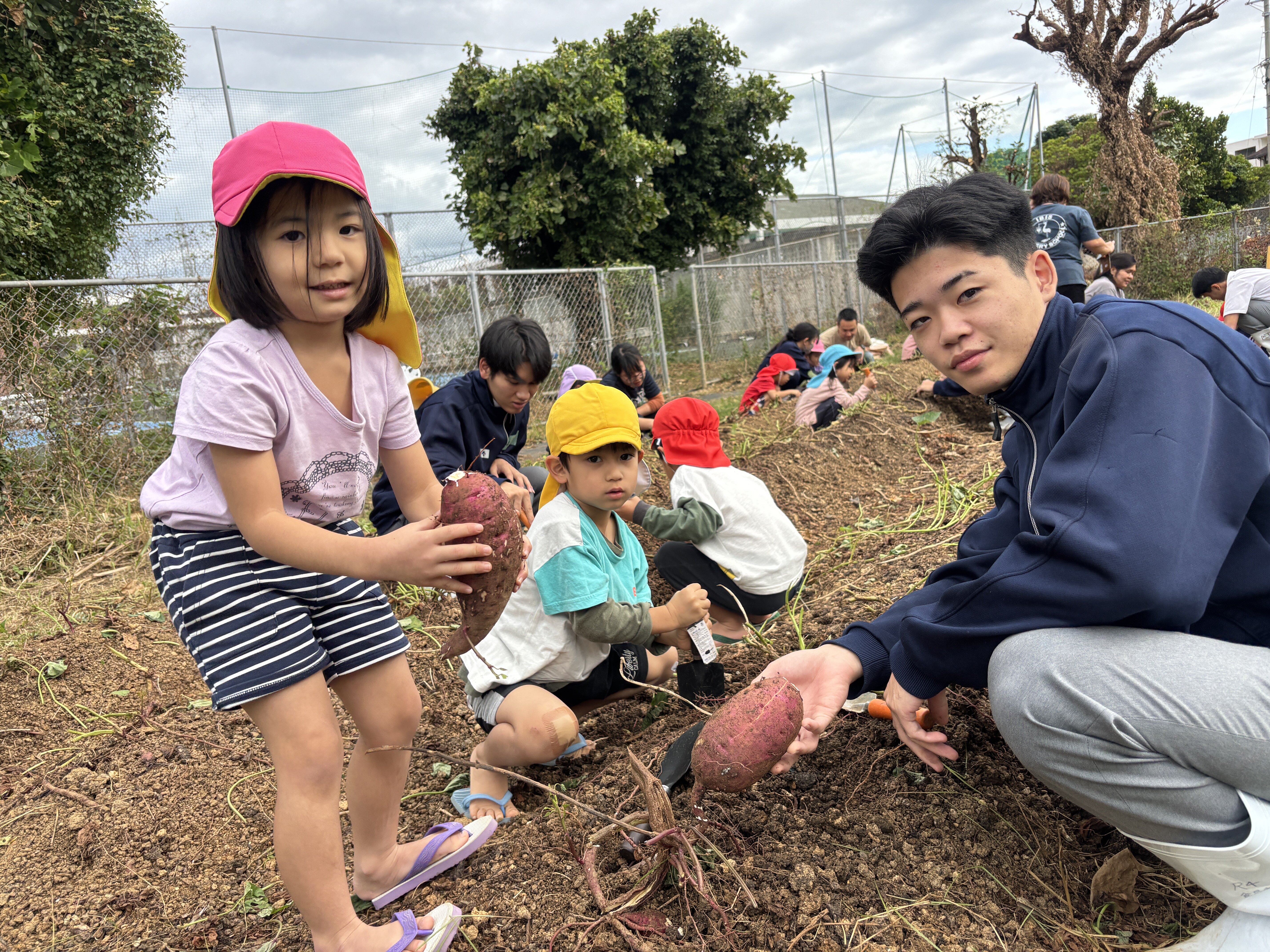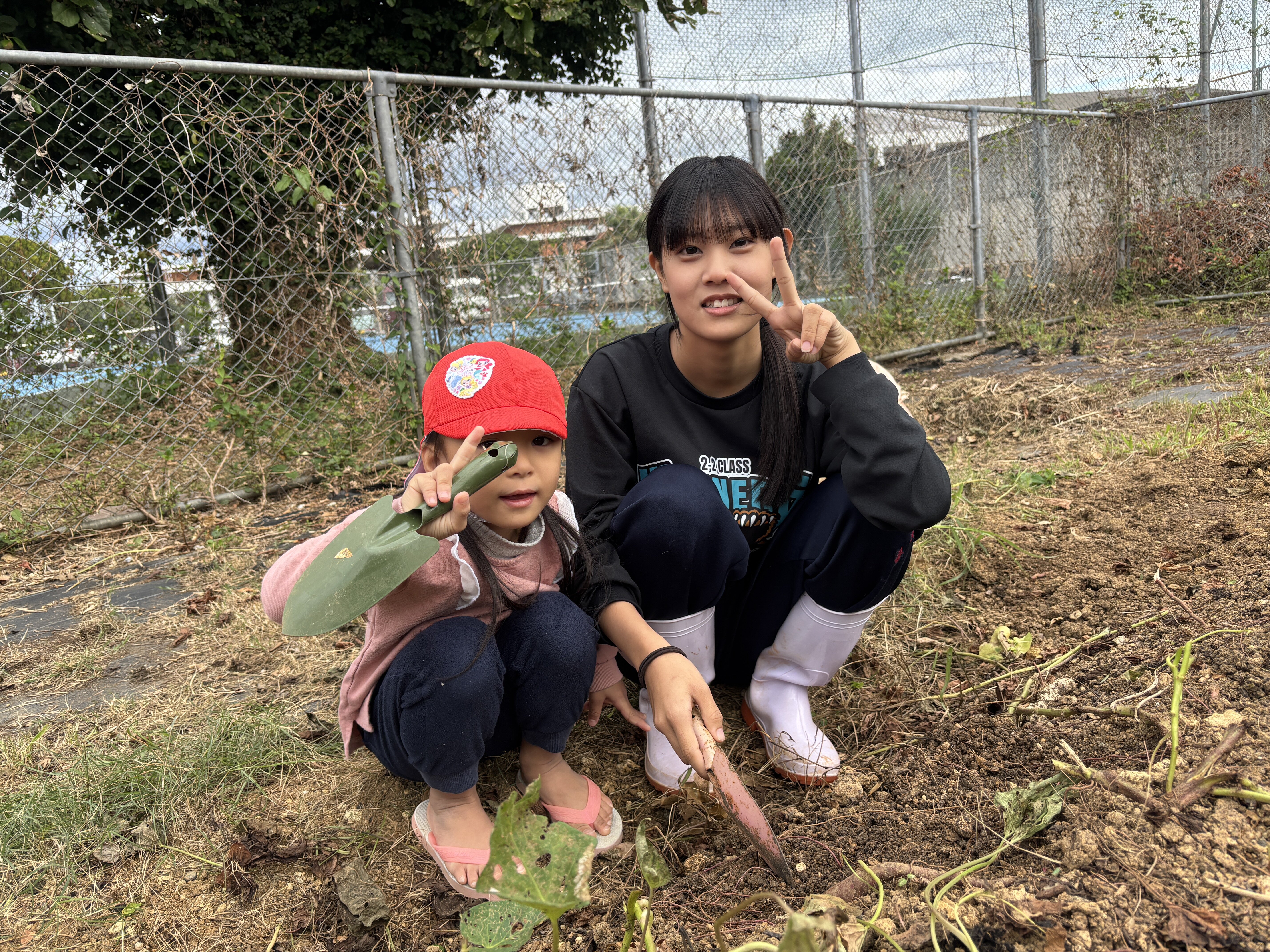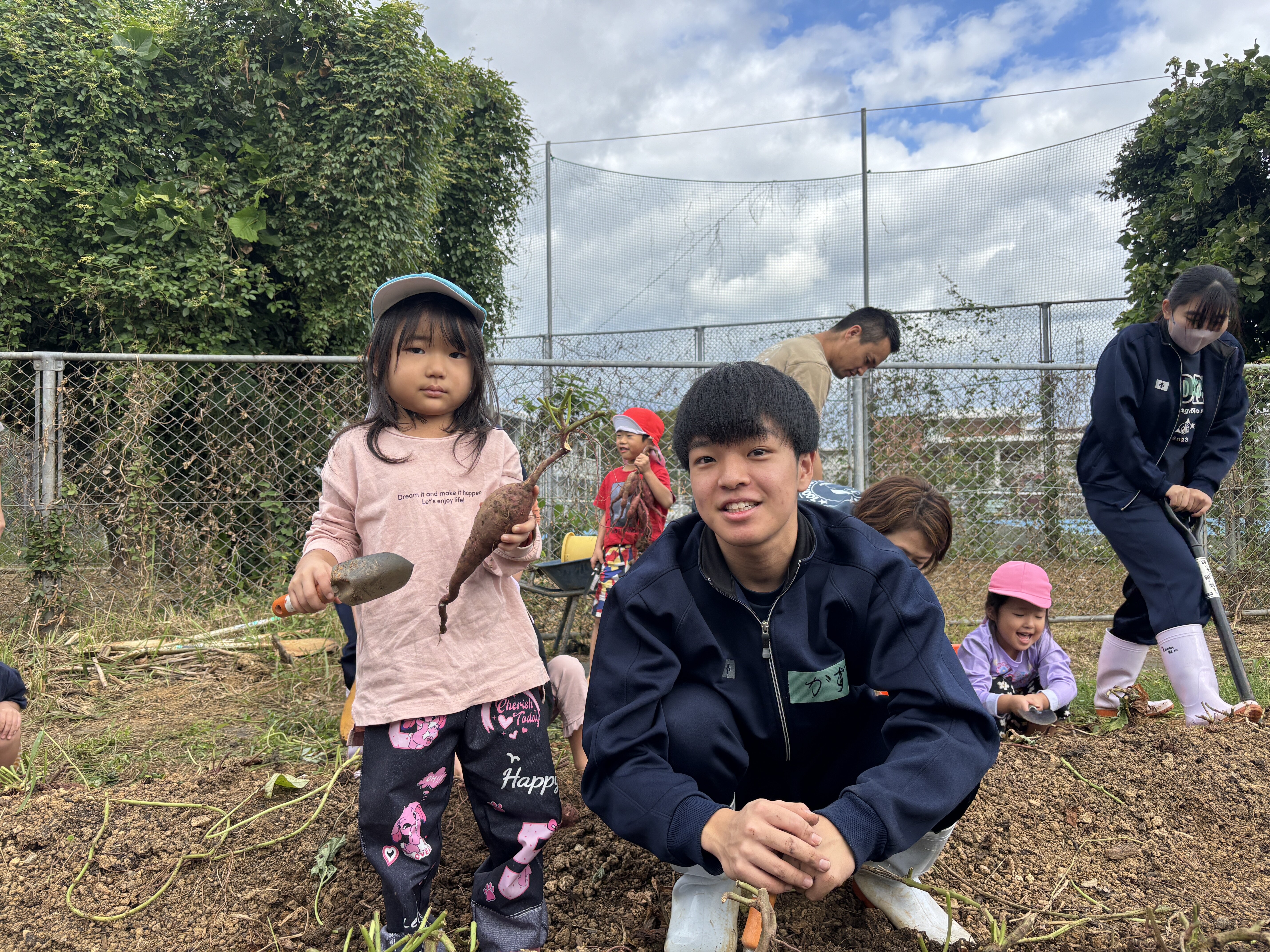 「生活園芸の授業」で、地域の保育園生と芋掘り体験をしました。